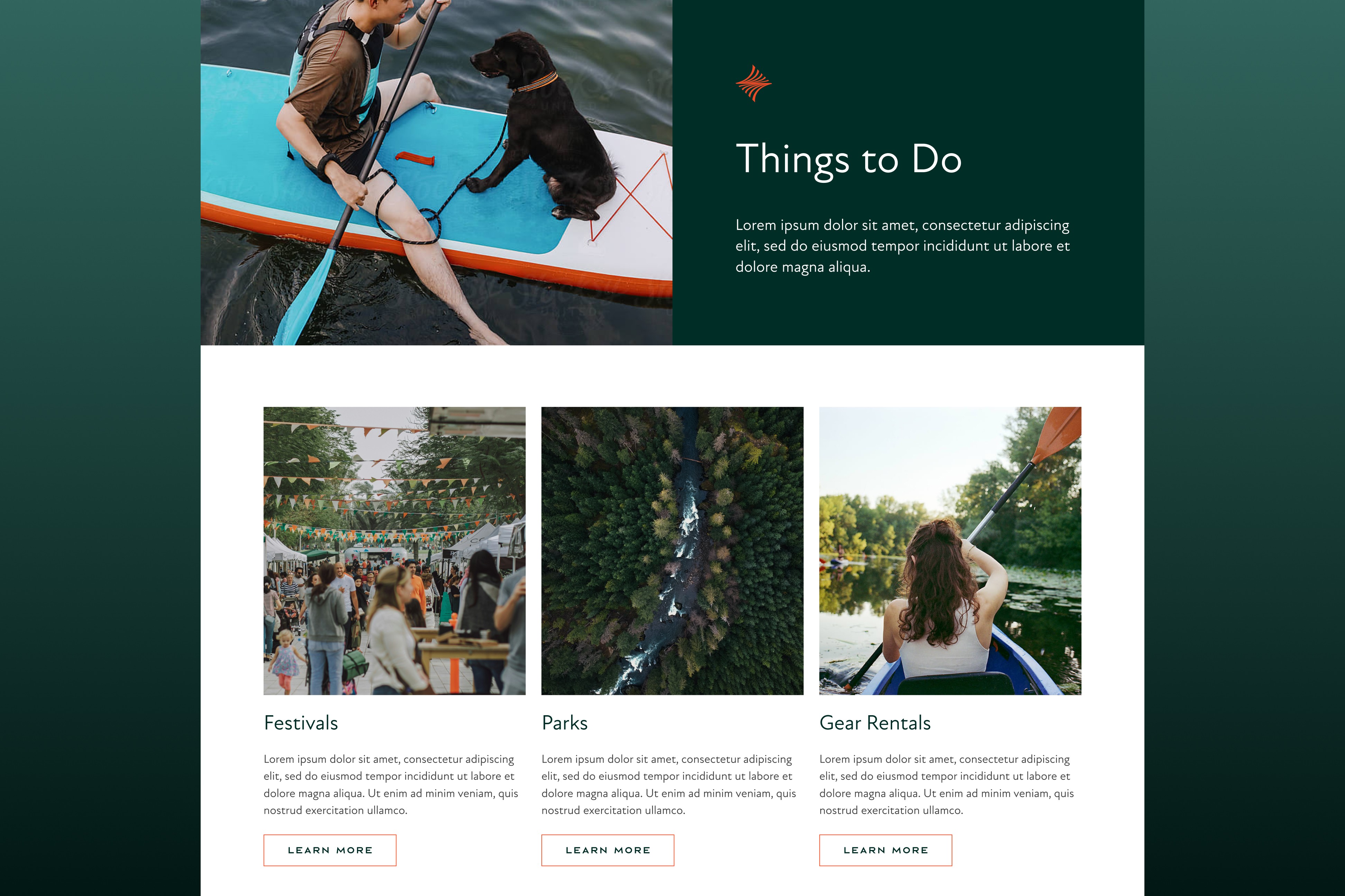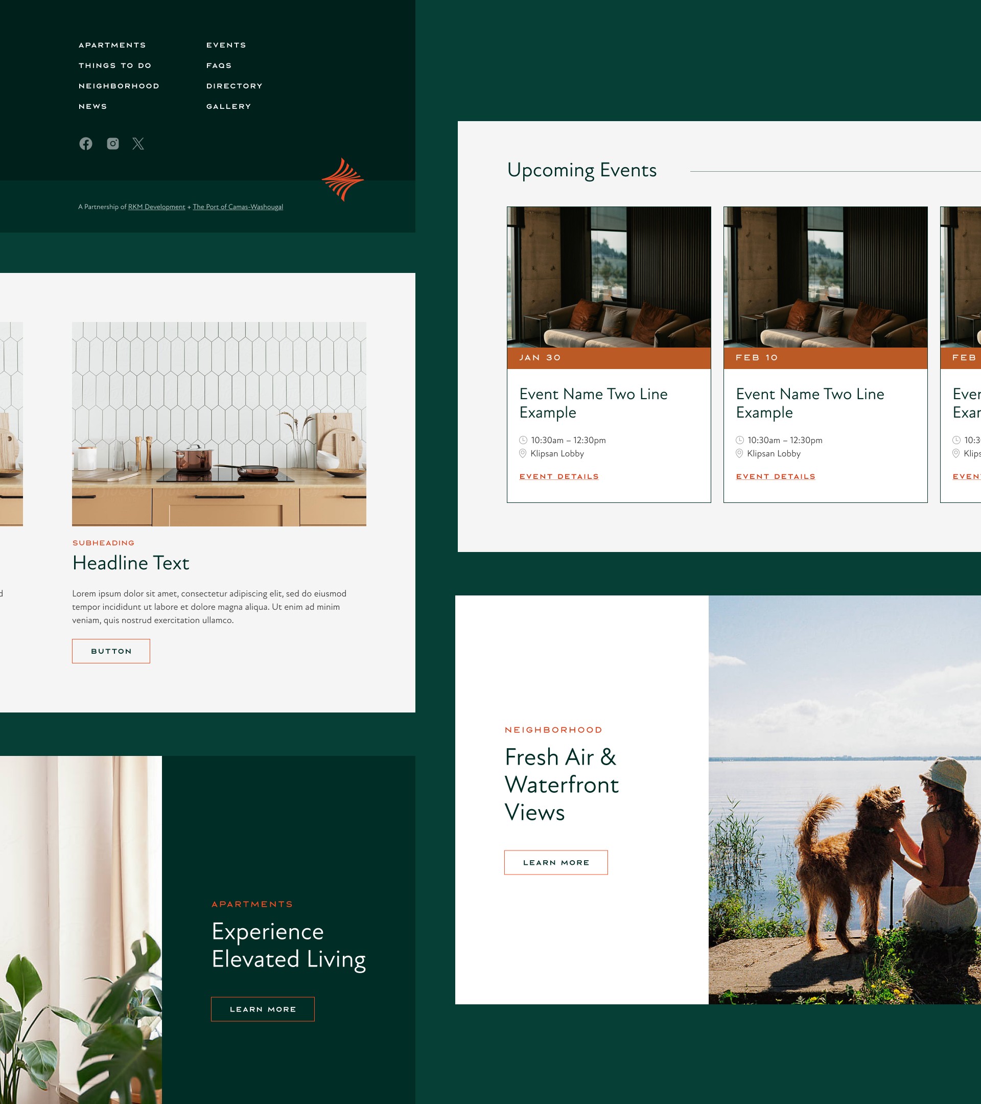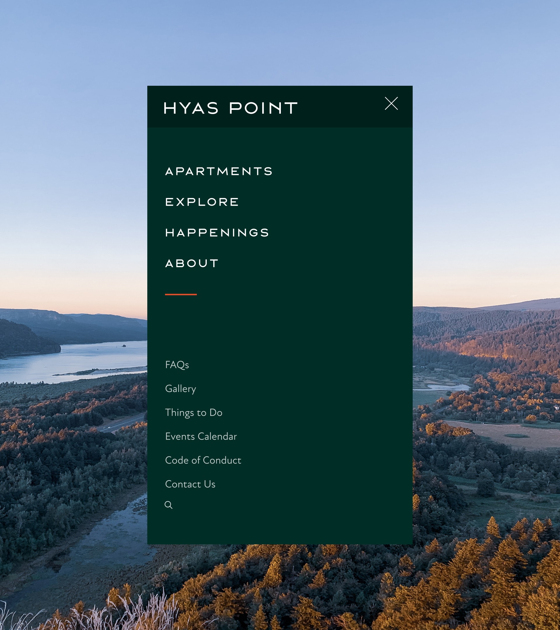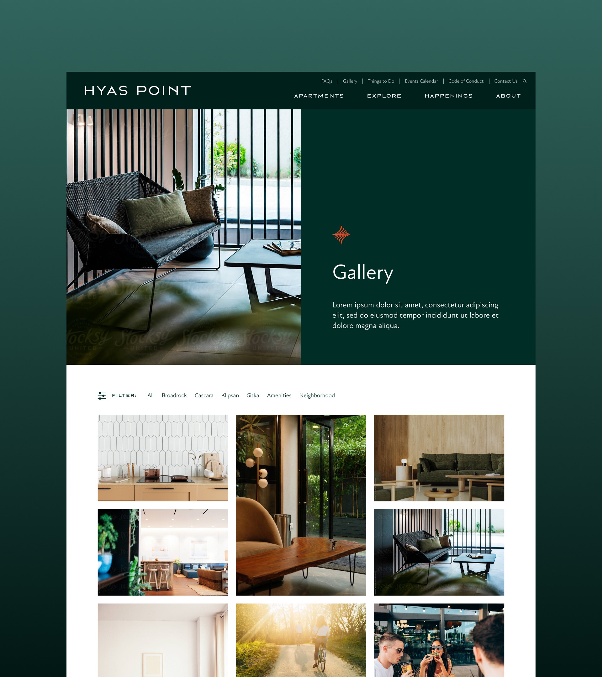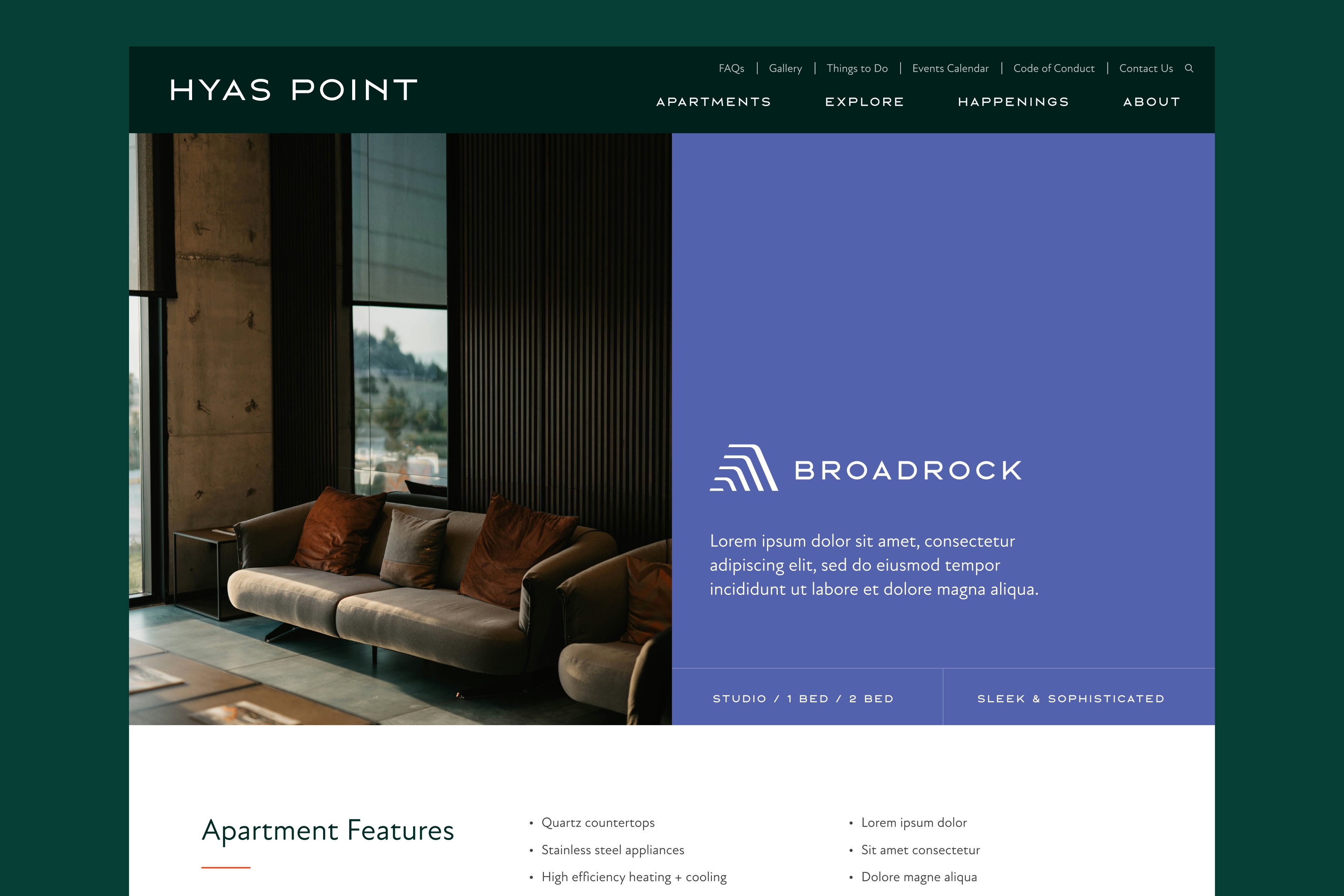 The approach focuses on clarity and flow, using hierarchy, pacing, and restraint to guide users through the district's offerings. The result is a scalable system that maintains consistency while allowing for additional pages as Hyas Point continues to grow.